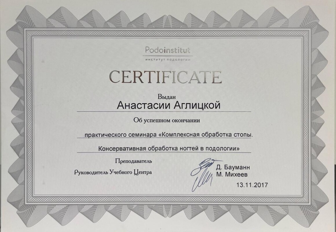 За годы работы я прошла обучение у ведущих специалистов мирового уровня и имею более 50 сертификатов, подтверждающих постоянное повышение квалификации.